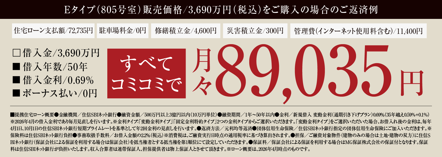 Eタイプ[805号室] 販売価格(税込)/3,690万円