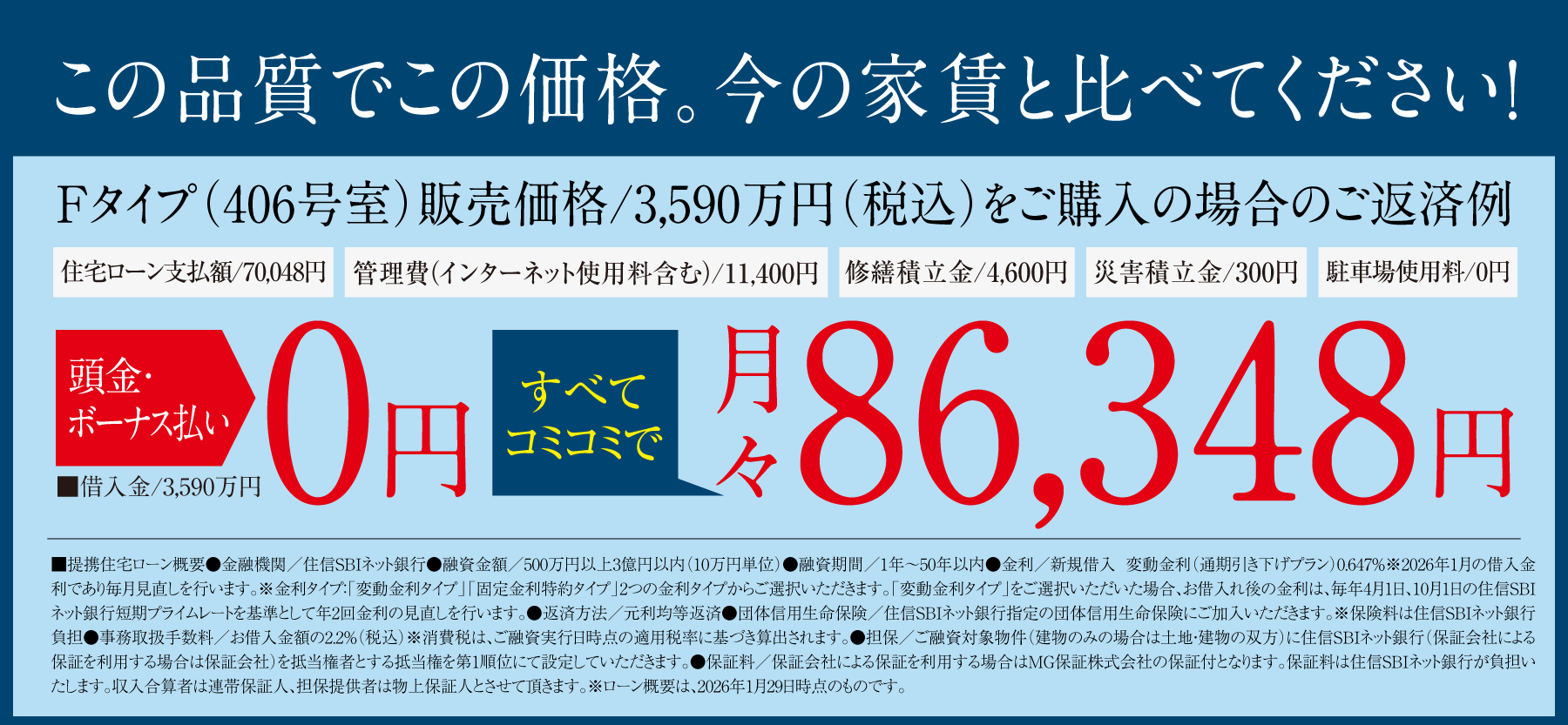 Fタイプ[406号室] 販売価格(税込)/3,590万円