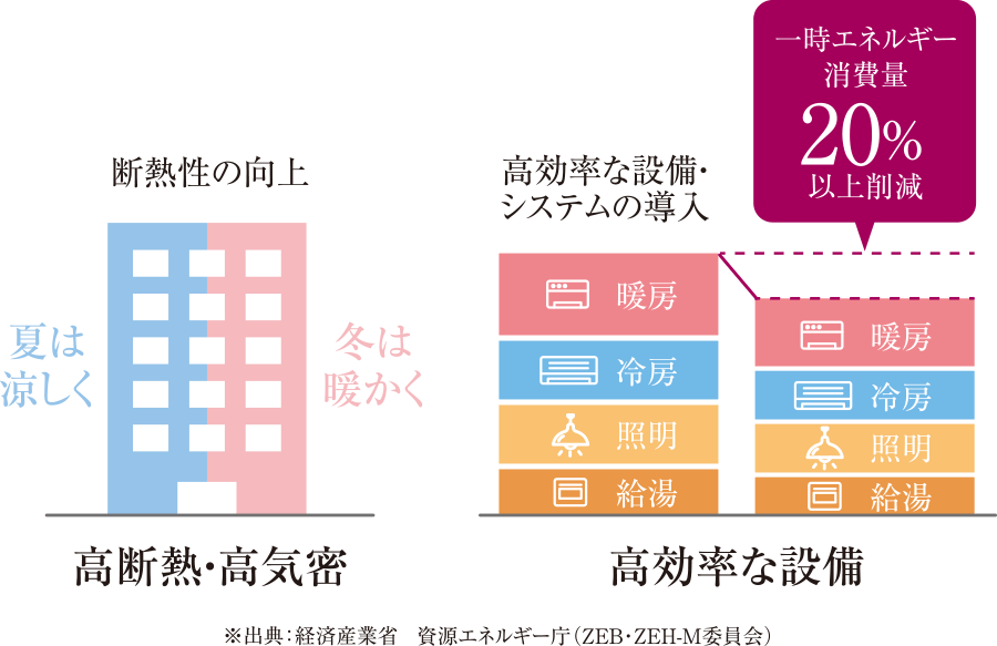 ZEH-MOrientedの採用により年間の一次エネルギー消費量が20%以上削減されますので、光熱費の削減にもつながります。