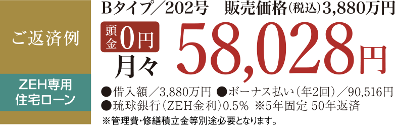 【提携住宅ローン概要】ZEH専用住宅ローン●金融機関/琉球銀行●金利/当初5年:固定金利0.5%。6年目以降は当行所定の住宅ローン基準金利に準じます。 ●優遇条件/アライアンス(ZEP Ryukyu)加盟業者が施工等を行うZEH住宅・ ZEH水準の住宅●対象となる資金使途/戸建て住宅取得(新築・中古)、マンション取得(新築・中古)、ZEH住宅・ZEH水準の住宅にするための改装資金●ご利用いただける方/借入時の年齢が満18歳以上満65歳以下で、最終ご返済時に85歳未満の方・年収150万円以上で継続して安定した収入を得られる方・会社経営者および自営業者は、同一ご職業を2年以上継続されている方・団体信用生命保険に加入可能で、保証会社の保証が得られる方。・その他当行所定の融資条件基準を満たしている方●ご返済期間/1年以上~50年以内(固定金利型については、各設定期間以上の返済期間となります)※その他、所定の融資条件基準を満たしていることが必要です。※上記融資条件は、2025年11月現在のもので、変更になる場合がございます。