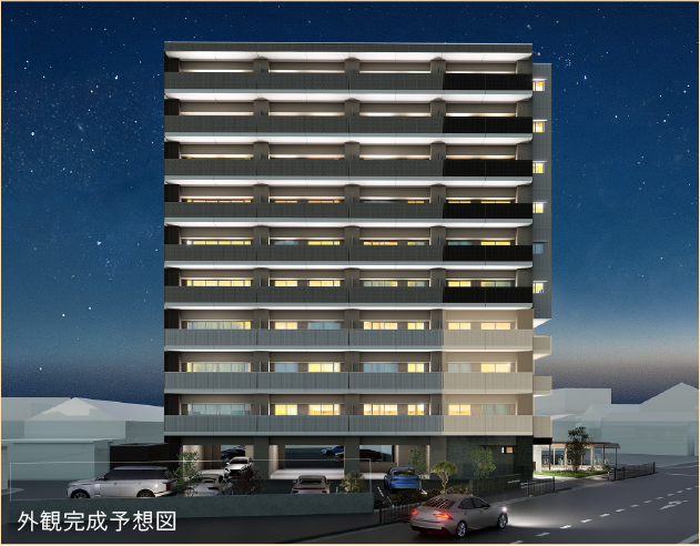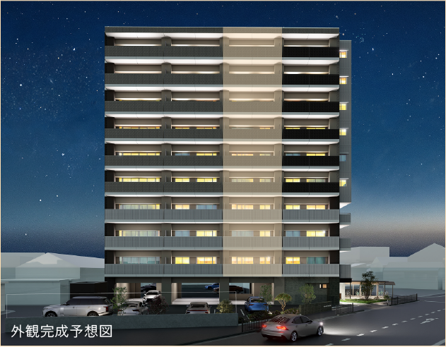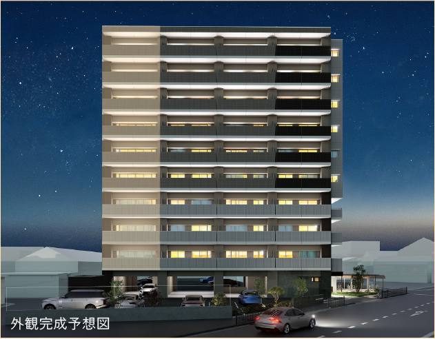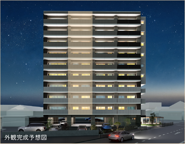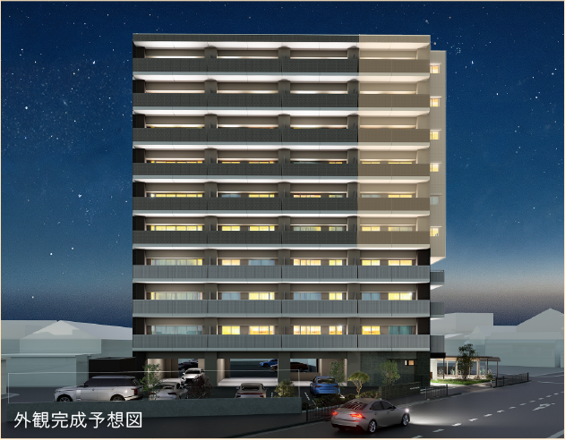 ※掲載の完成予想図は図面を基に描き起こしたもので設計・設備・仕様・色調・植栽等、実際とは多少異なる場合がございます。また、行政官庁の指導または施工上の都合により、設計・設備・仕様等の変更がある場合がございます。予めご了承ください。