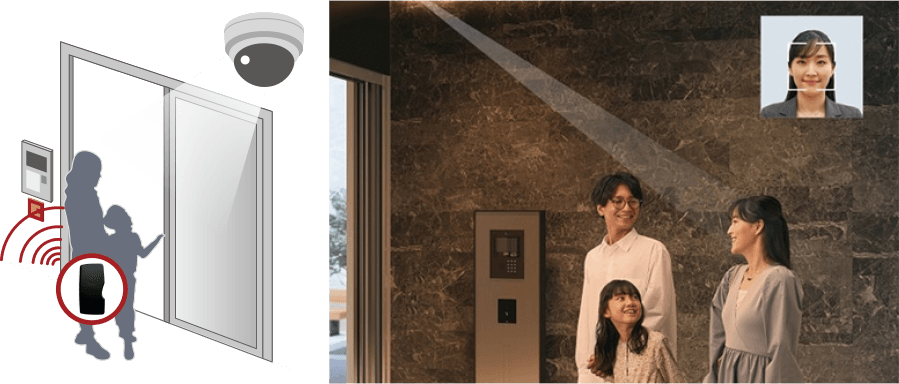 顔を認証し、どこにも触れることなくエントランスをスムーズに通過できます。