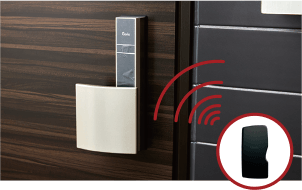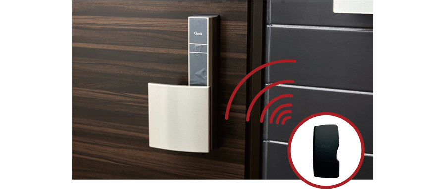 Tebraキーをカバンやポケットにしまったままリーダのボタンを押すだけで施解錠が可能です。