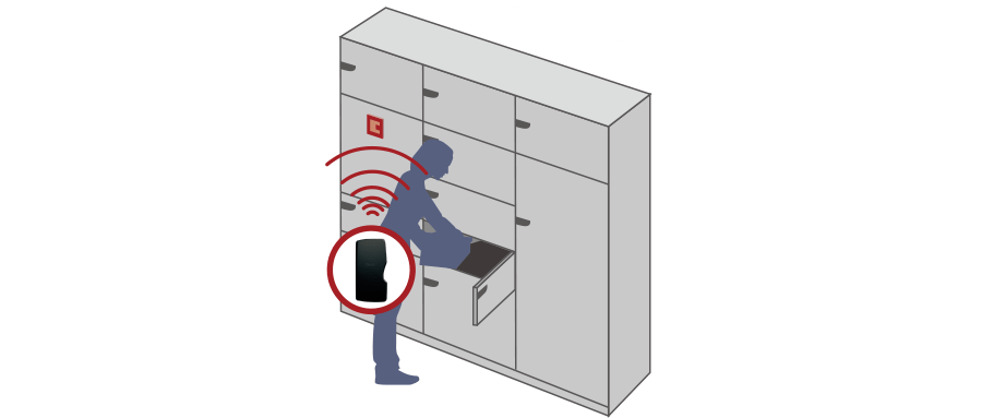 Tebraキーを携帯してリーダに手をかざすだけで、荷物を取り出すことができます。