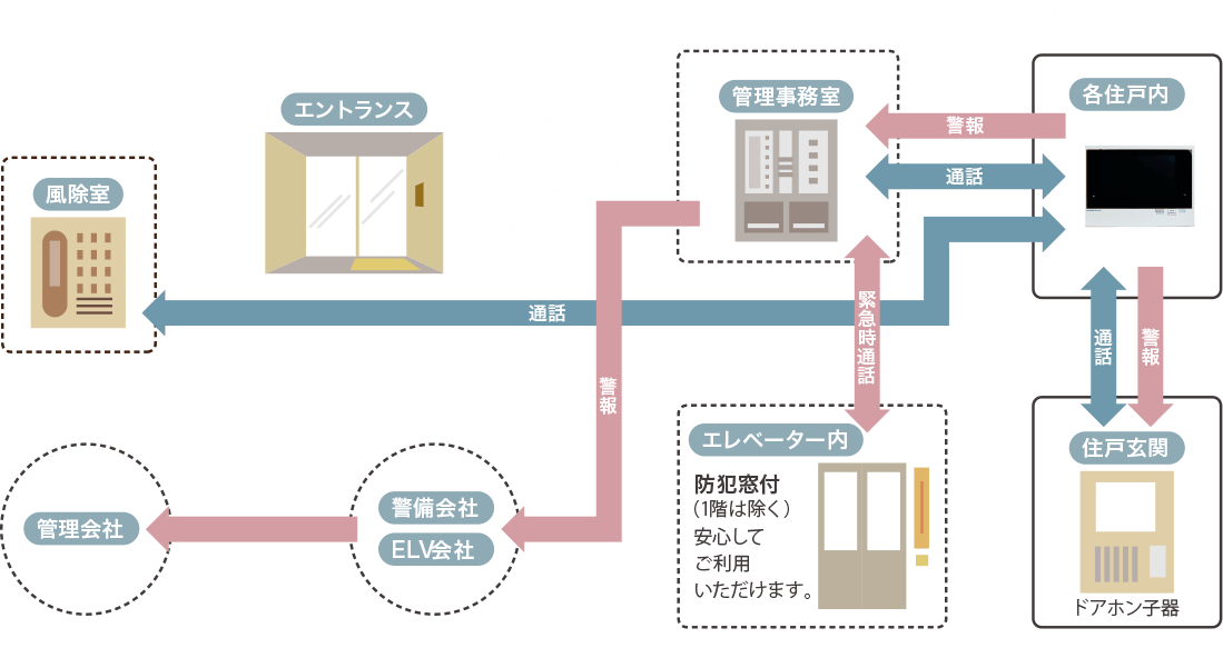 認証カメラでの顔認証、またはTebraキーをカバンやポケットに入れたままでエントランスを解錠できます。また、宅配ボックスや住戸玄関ドアもTebraキーで操作でき便利です。