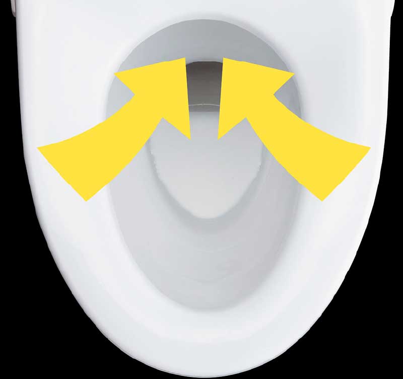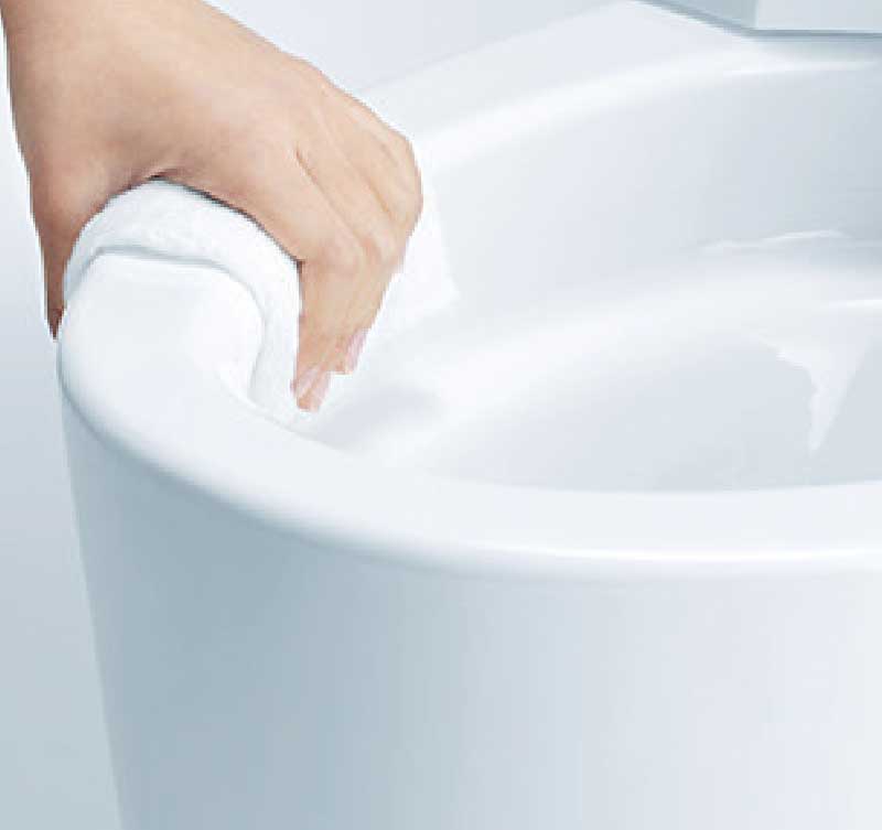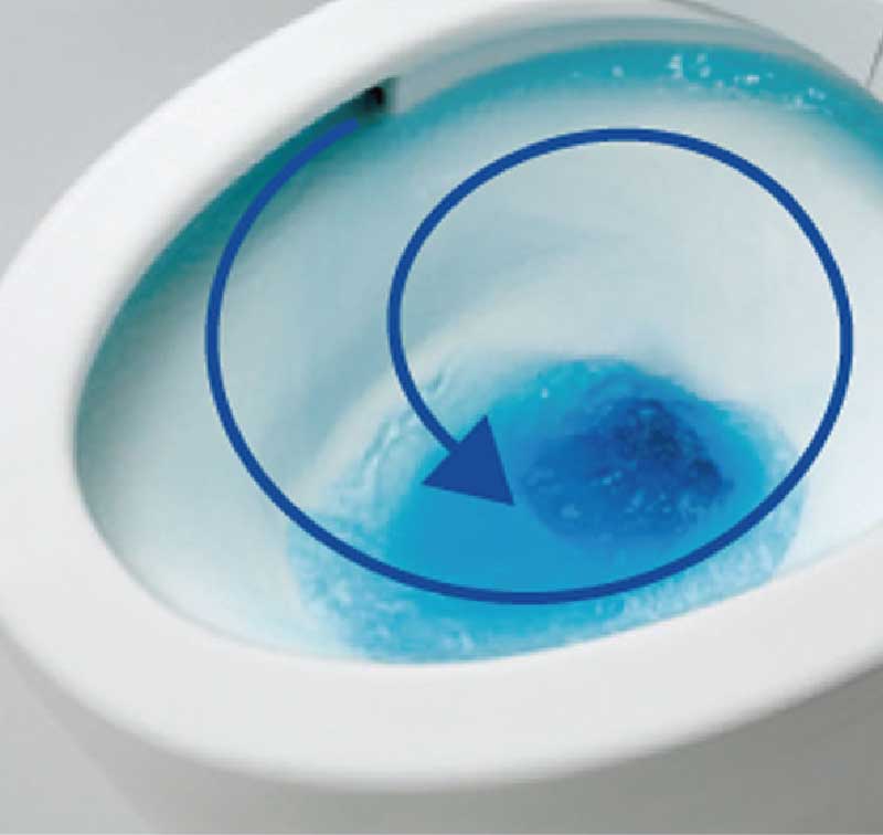 内面をまんべんなく旋回し、しっかり汚れを洗浄。便器正面から吐水口が見えないので、見た目スッキリ。