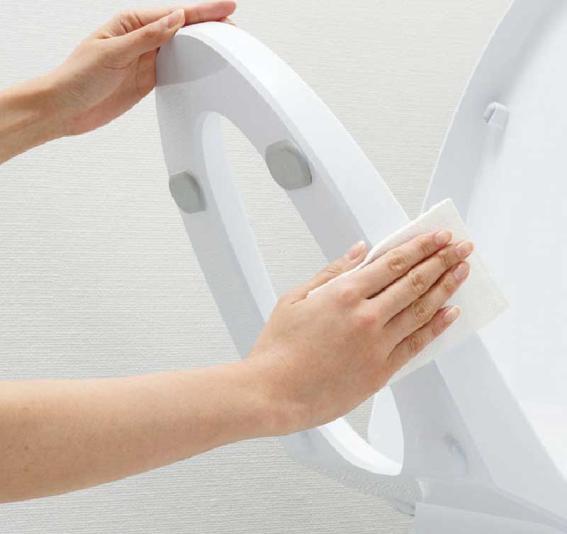 便座のつぎ目がなく、便座裏も防汚素材で汚れてもサッと一拭き。お掃除が楽になります。