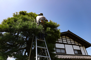 庭にある松の木は年2回の手入れが必須。手入れしないとスカスカになってしまうけど、植木屋さんに頼むのも結構お金がかかる。