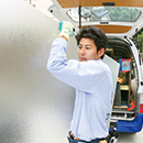 外気に面するガラスの緊急対応サービスです。スタッフが、ヒビ割れや破損に対応します。