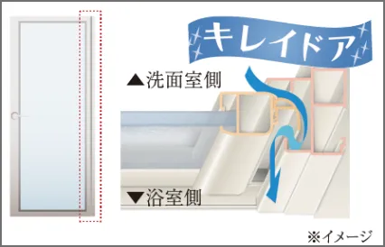 カビやすい浴室側のパッキンをなくし、汚れにくく、お掃除しやすい浴室ドアを実現しました。