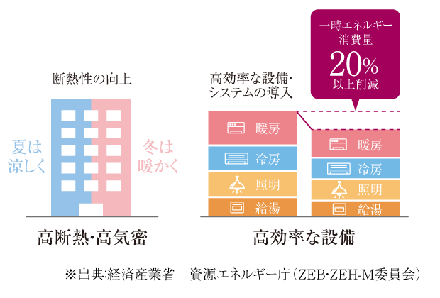 ZEH-MOrientedの採用により年間の一次エネルギー消費量が20%以上削減されますので、光熱費の削減にもつながります。