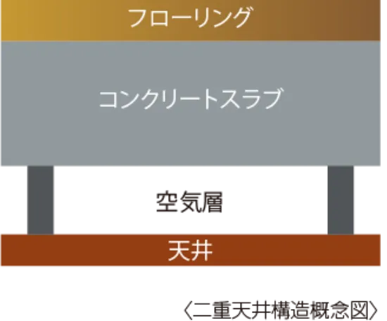 天井とコンクリートスラブとの間に空間があるので天井に張っている配線(主に照明関係)を将来的に動かすことができます。※一部除く