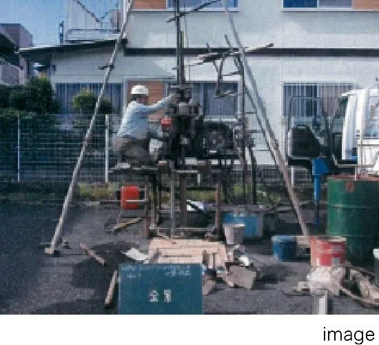 建設予定地の地質調査を実施しています。しっかりとした地盤を探し出した上で、その地盤に適合する基礎設計を行います。強固な建物とそれを支える地盤、その2つを一体化させる基礎が強みを発揮します。