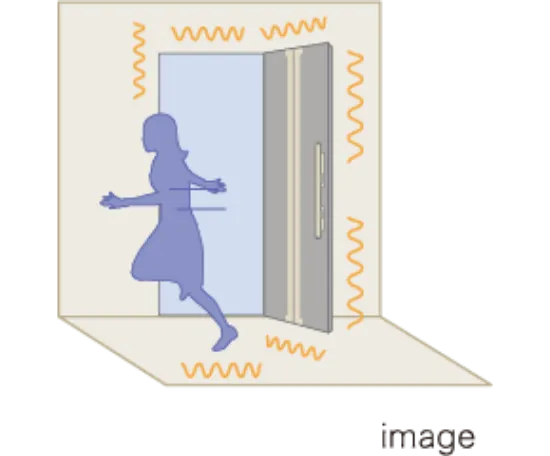 地震で建物に影響が及んでも一定レベルまでは玄関扉(耐震構造玄関枠)が開き、避難通路を確保できるように配慮しています。共用部のエレベーターは、地震発生時にただちに最寄り階に停止しドアが開く自動着床装置を採用しています。