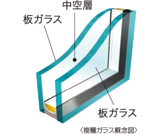 一般的な単板ガラスに比べ、熱の侵入や放出を大幅に抑える複層ガラスの採用により、暖房効率を高めると同時にガラス面への結露を抑えます。