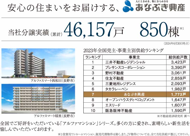 改めてプロジェクトの全体像を眺めてみますと、8階建て、総戸数71戸のマンション「アルファステイツ北長野」と全14区画の注文住宅用地の一体開発ということで、非常にバランスの取れた計画になっていると思いますね。