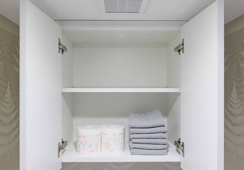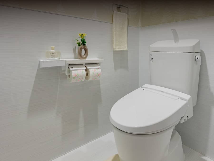 - トイレットペーパーなどが収納できる吊り戸棚を備えており、トイレ空間がスッキリと快適に。