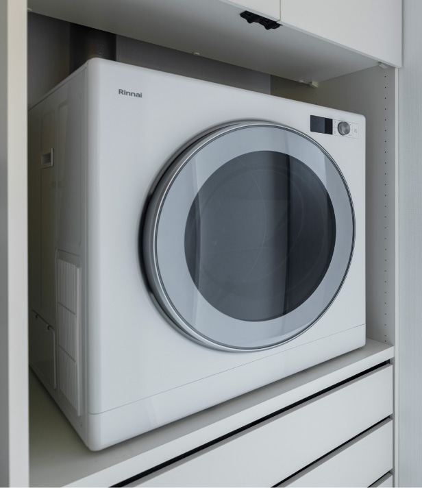 ガスのパワーでパワフル乾燥。新品タオルのように繊維を立ち上げ、ふんわりと仕上がります。また、うれしい除菌効果もあり、雨でも夜でも花粉の季節もカラッと乾燥できます。