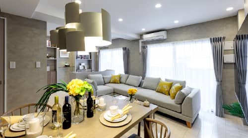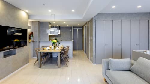 さりげない日常の舞台となる居住空間。明るく、開放的であることはもちろん、心地よく暮らしていただくための上質感にもこだわりました。ご家族がこの地で末長く幸せであるために。