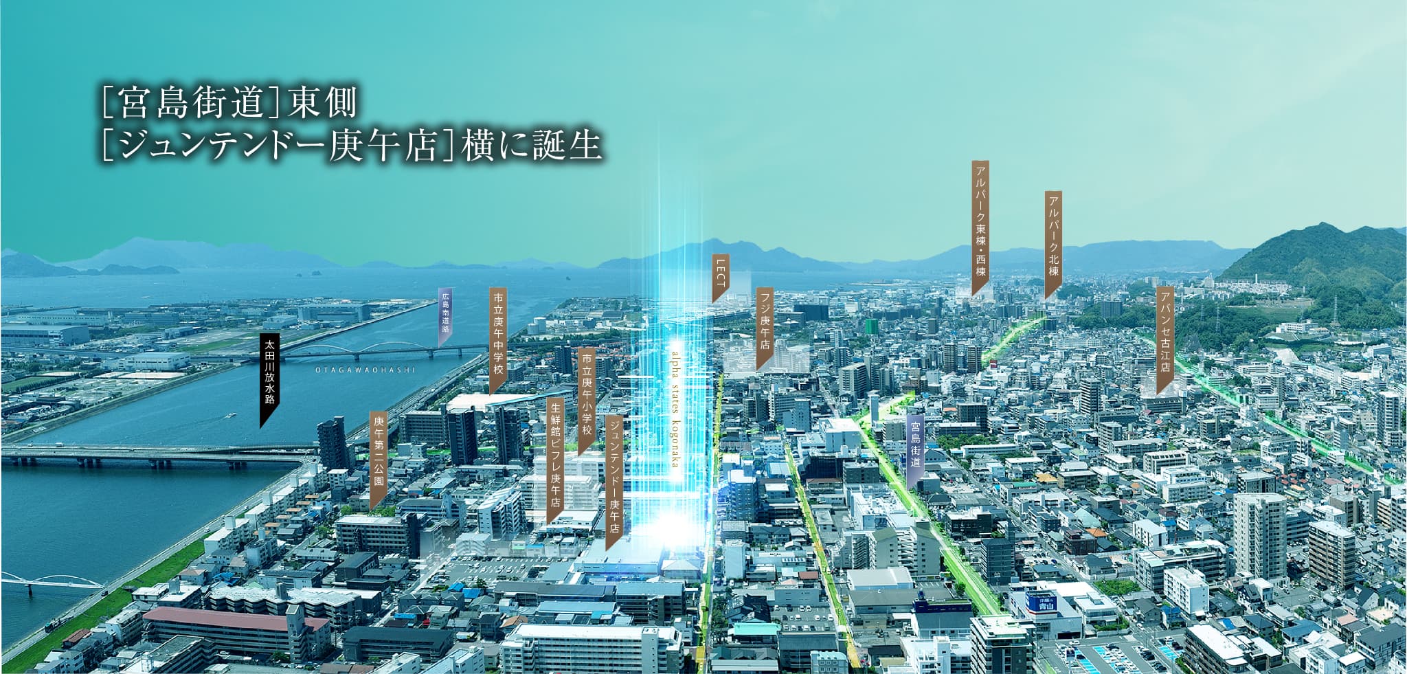 ※掲載の写真は2024年6月に撮影したものでCG加工を施しています。また、現地の位置を表現した光は、建物の高さや規模を示すものではありません。