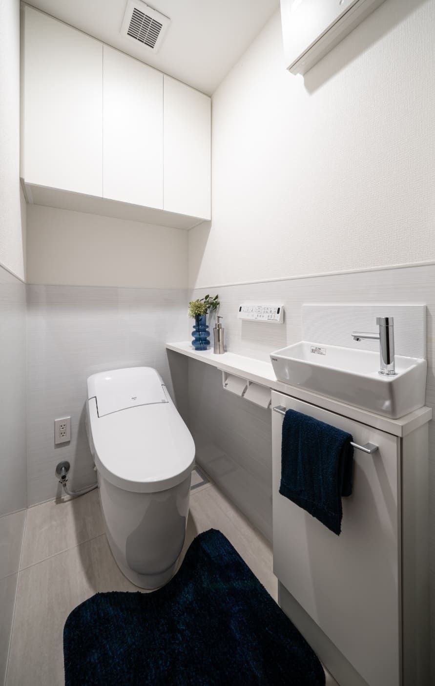 トイレの上部に、掃除道具・トイレットペーパーを収納することができます。