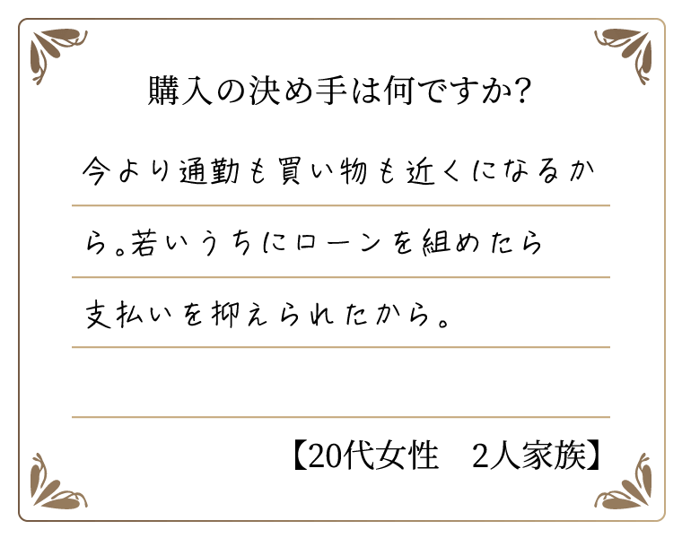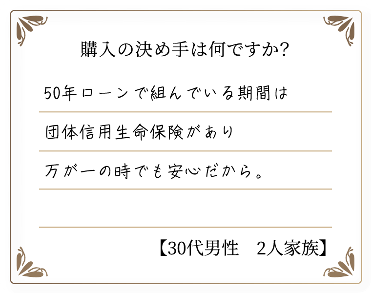 立地環境や設備仕様など、購入の決め手となった理由をご紹介します。