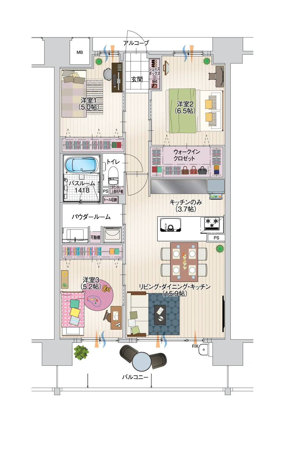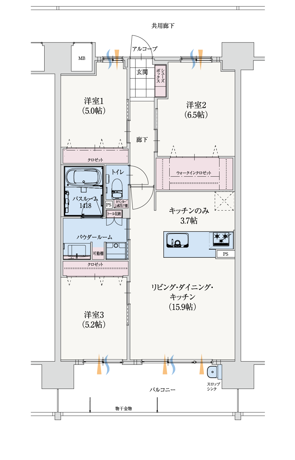 ※掲載の図面は計画段階のものを描き起こしたもので行政官庁の指導または施工上の都合により、設計・設備・仕様・色調等の変更がある場合がございます。予めご了承ください。