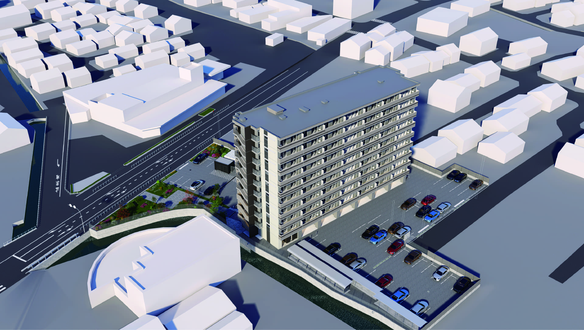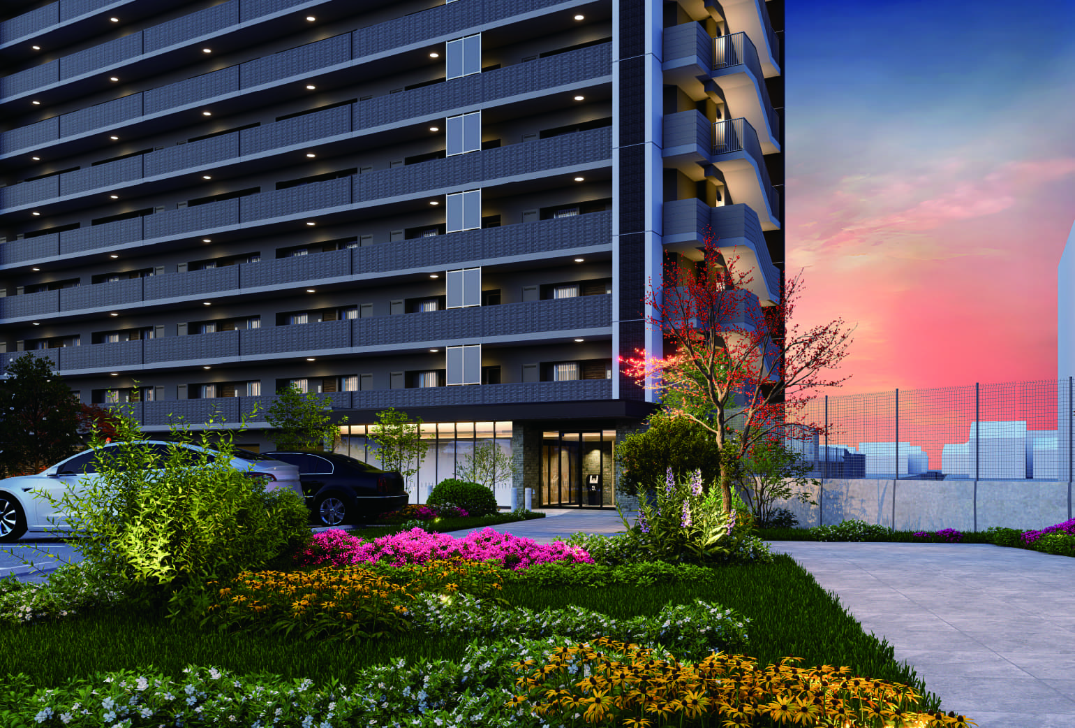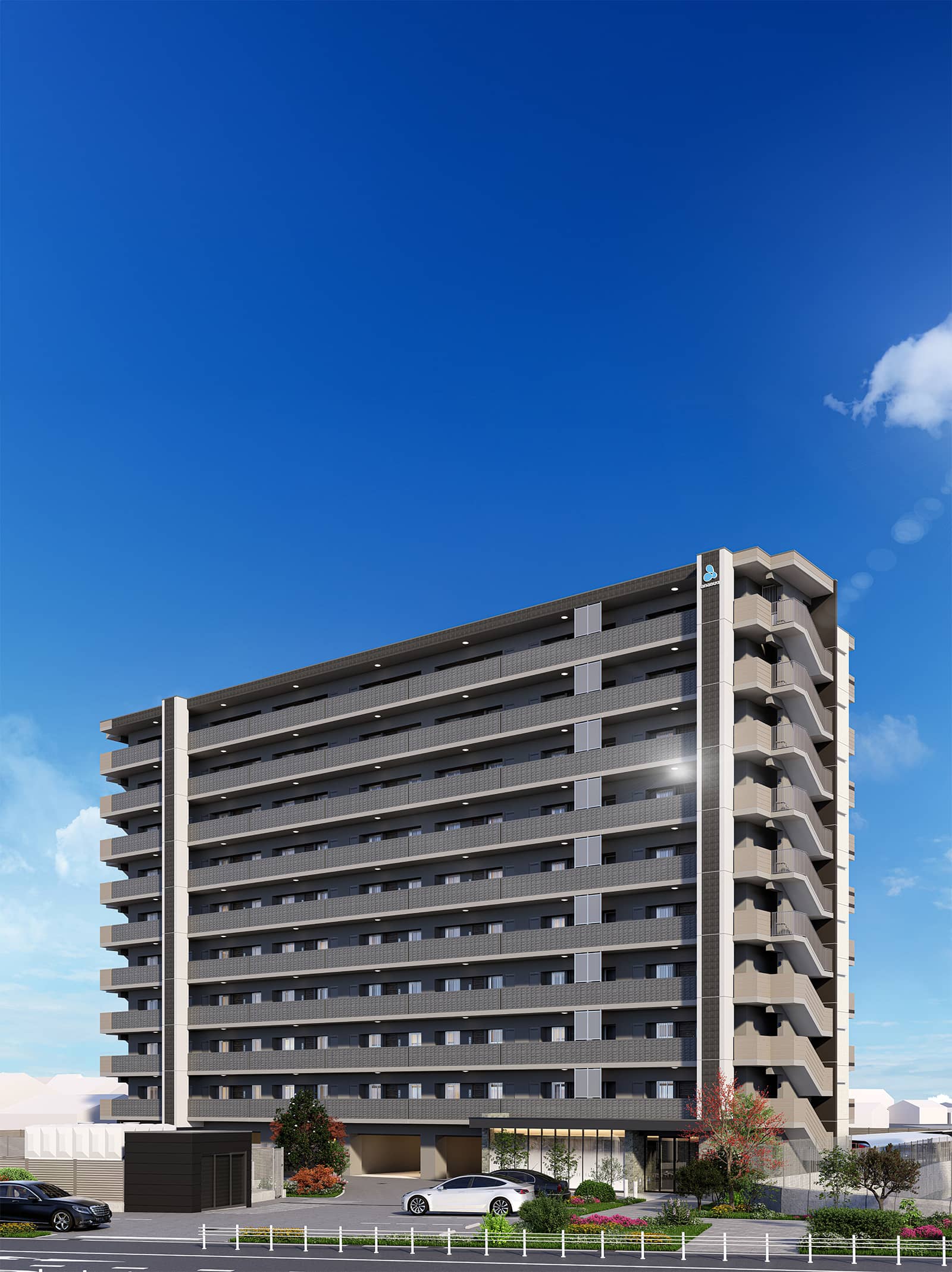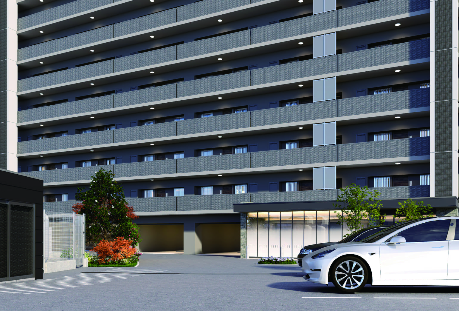 ※外観完成予想図/図面を基に描きおこし、加工処理を加えたもので、実際とは異なります。また、行政官庁の指導または施工上の都合により、設計・仕様・色調等の変更がある場合がございます。予めご了承ください。