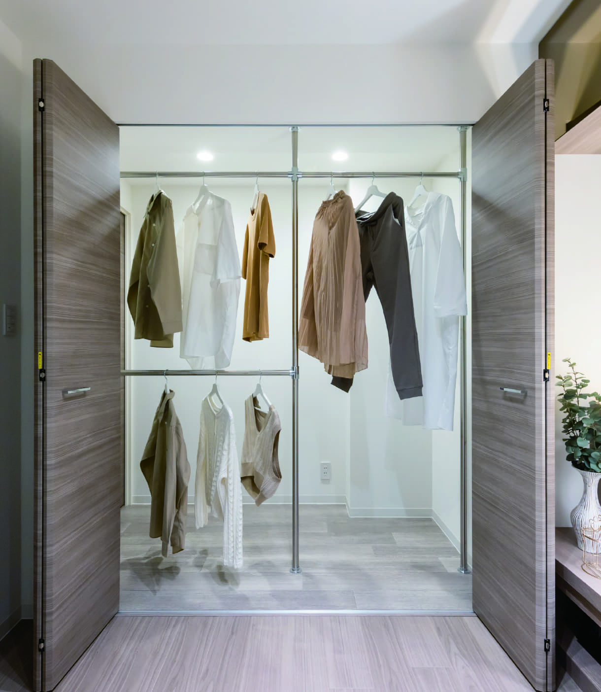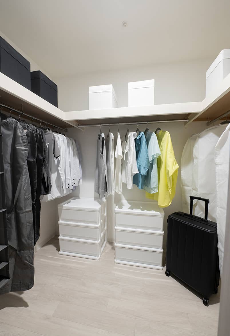 「掛ける」「置く」を同時に実現。スーツケースや季節家電も足元にまとめて収納することができます。