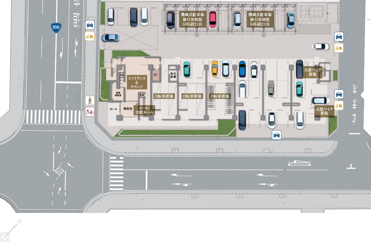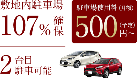 敷地内に全戸分を超える107%の駐車場を確保。日々の出し入れもスムーズで、忙しい朝や雨の日でもストレスなく利用可能。車中心のライフスタイルにもしっかり応えます。