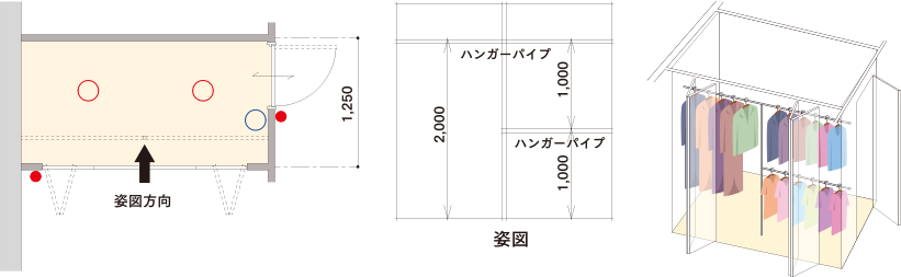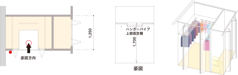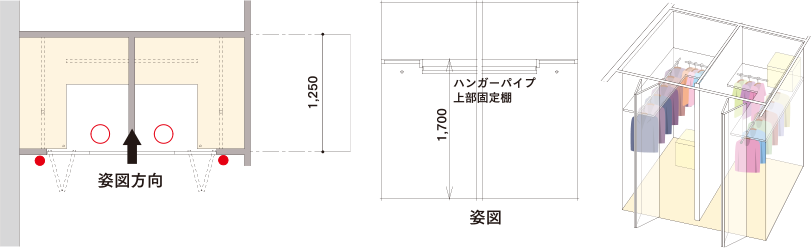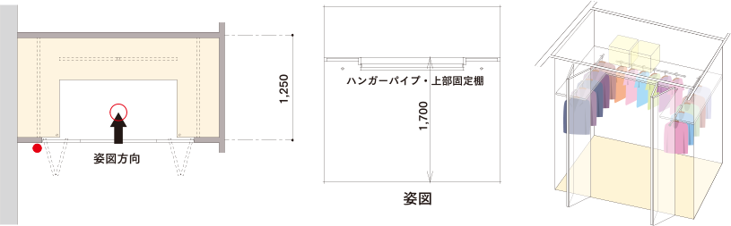 ハンガーパイプと棚を配置。