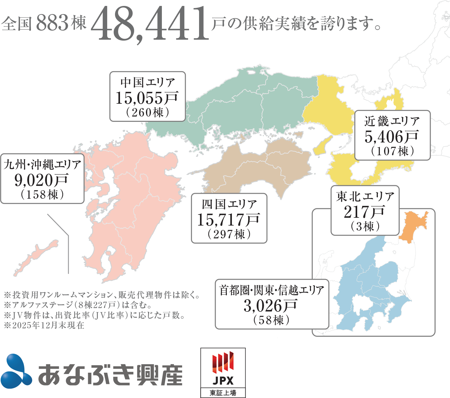 「アルファシリーズ」のブランドで展開するファミリー向け分譲マンション事業は、1985年香川県高松市にてスタートして以来西日本を中心に事業を展開し、今や関東・東海・信越・東北エリアなどの東日本エリアへも拡大。地域の皆様の快適な暮らしへ貢献しています。