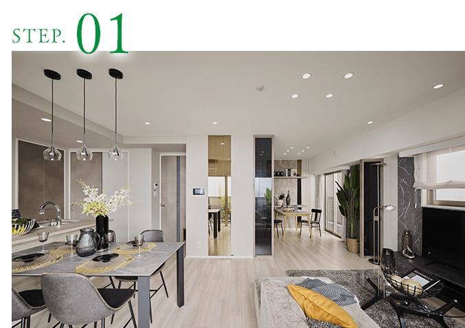 ※掲載写真は当社別物件のモデルルームを撮影したもので、オプションも含まれています。オプション・家具・調度品は販売価格に含まれません。一部仕様や色調が異なる場合があります。予めご了承ください。