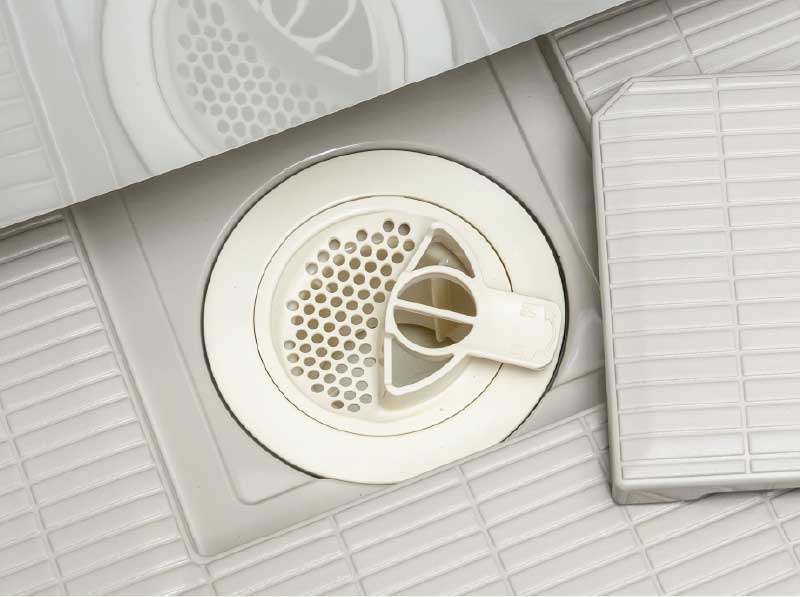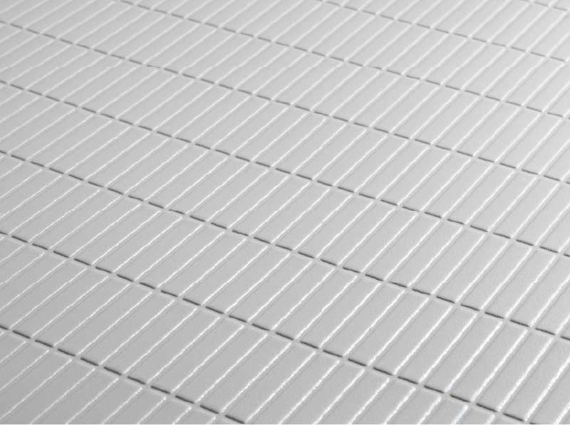 水の表面張力を壊す効果で乾きやすい床。また同一方向にそろうグリッド加工によってお掃除もしやすくなりました。
