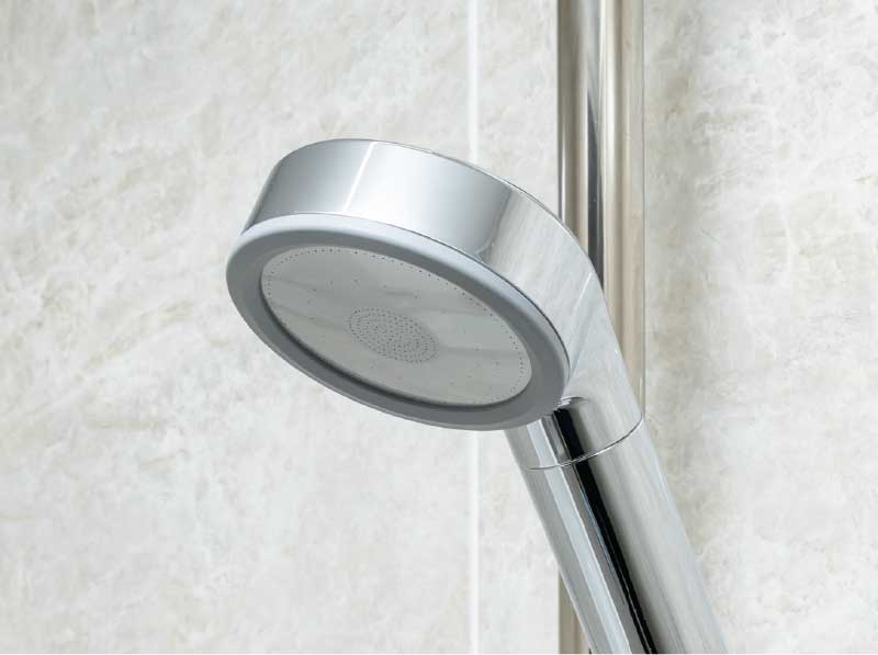 シャワーの強さや心地よさはそのままで、節水を実現しました。また、散水板にステンレスを採用し、上質感にこだわりました。