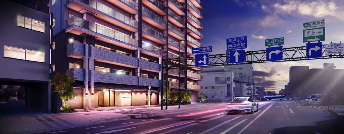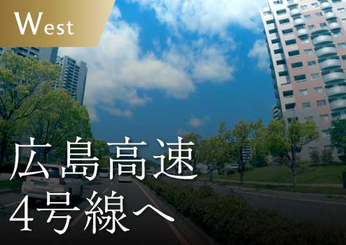 広島の都心部と西方面をぐっと近づけてくれる広島高速4号線へ。山陽自動車道へもスムーズアクセス。県外への出張やレジャーや帰省も軽快に広域へ広がる。