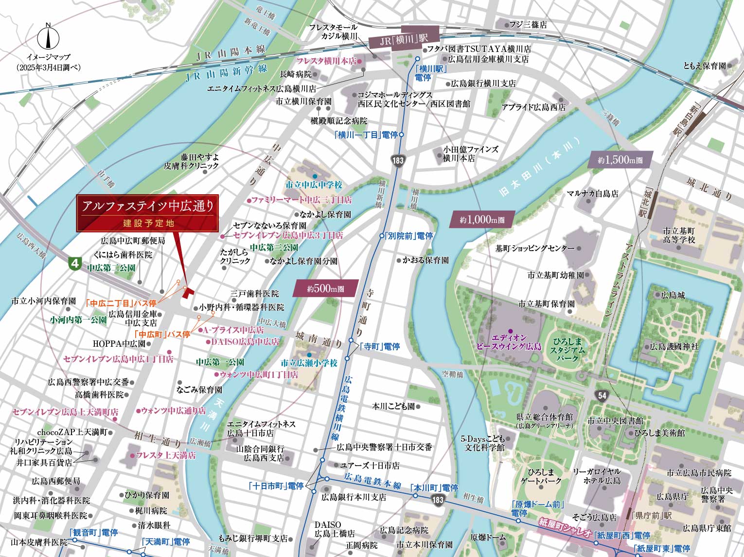 主要な幹線道路が交わっていて、北に行けばJR横川駅、東に進めばサッカースタジアムや紙屋町・八丁堀、西は高速4号線につながっていて、広島の主要エリアへスムーズにアクセスできるんです。 「中広」という場所は、まさに“中心も広域も一瞬でつながる新しい拠点”と言えるでしょう。 -
