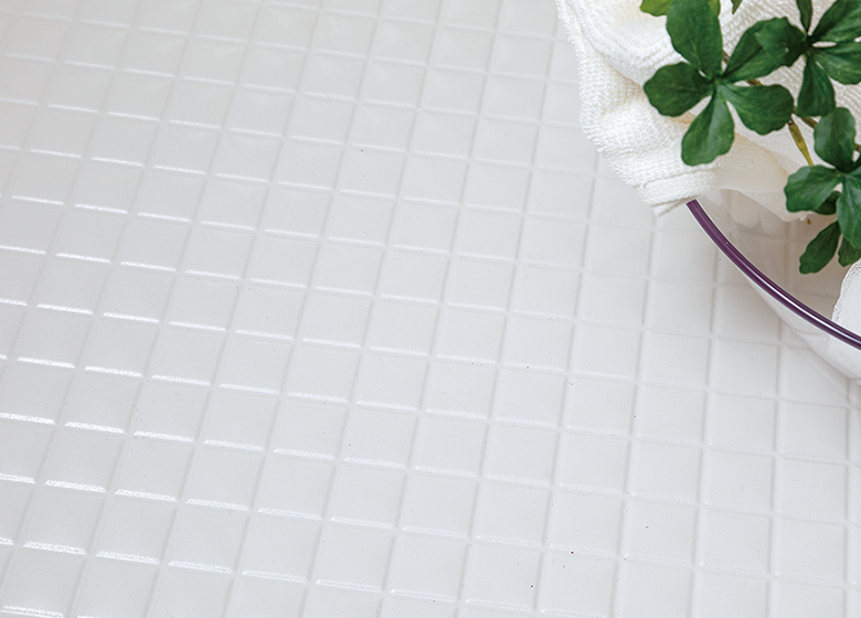 水はけの良い素材と床形状で水たまりを防ぎ、乾きやすくなっています。