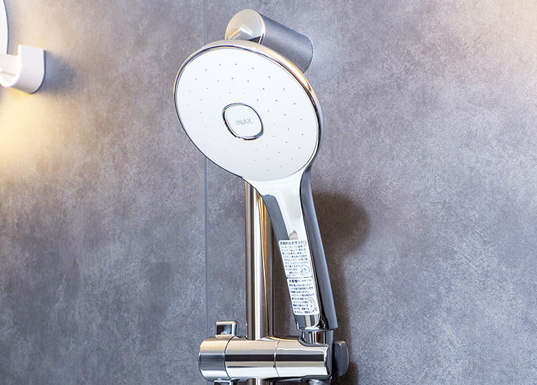 散水板の穴の大きさや、水滴にたっぷりの空気を含ませることで、ボリュームのある浴び心地と節水を実現しました。