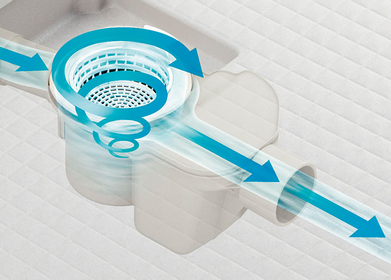 浴槽の残り湯を利用し、排水トラップ内にうず流を発生させ、毛髪やゴミを“くるりん”とひとまとめにします。