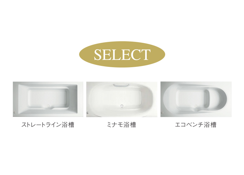 ゆったりとリラックスできる形状にこだわった、入浴スタイルに合わせた浴槽をラインナップ。3つのスタイルからお選びいただけます。