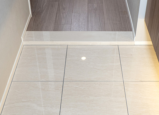 玄関フロアは洗練された優雅な印象の大理石調タイルを使用しています。