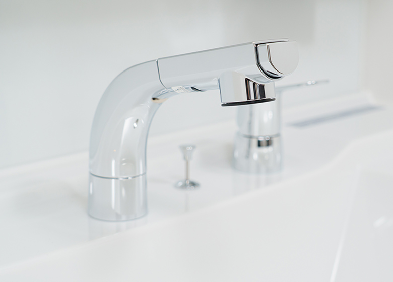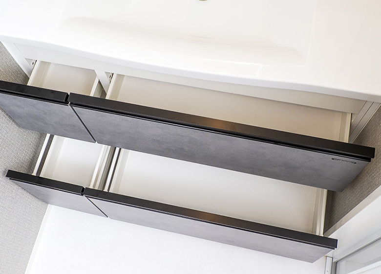 洗面の収納は使いやすいスライド収納を2段、設けました。