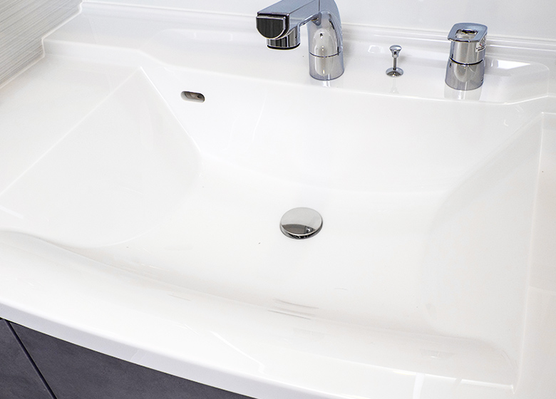 アクリル人造大理石を使ったカウンターボウル。ボウル一体型なので汚れにくくお手入れカンタンです。