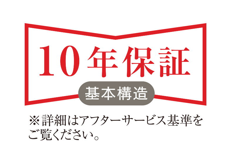 構造耐力上主要な部分または雨水の浸水を防止する部分の瑕疵は建物完成後、お引き渡しの日から10年間無償修理いたします。