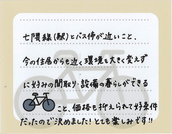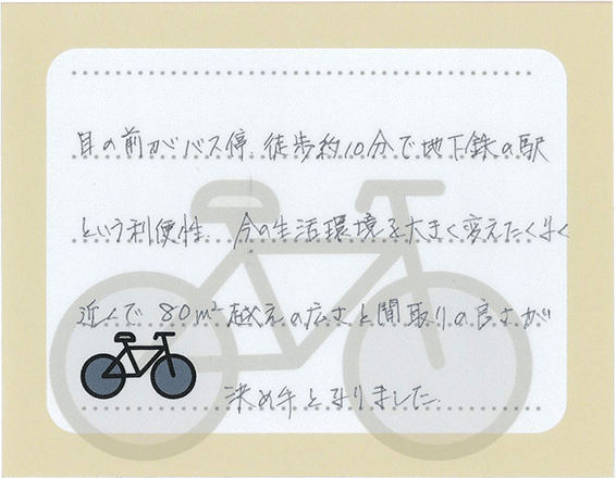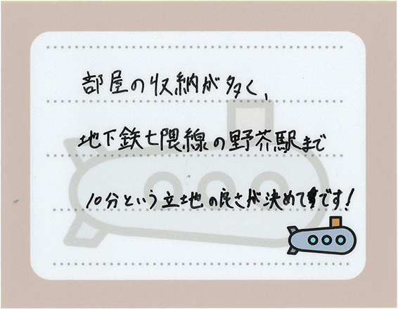 ※掲載の周辺環境写真は2025年4月に撮影したものです。※徒歩の所要時間は80m=1分(小数点以下切上げ)、車の所要時間は法定速度に沿って実測した平均値です。道路状況等により異なります。※所要時間は通勤時=目的駅/バス停に7:00~8:59着の最多の所要時間を明記しています。※最多本数が同数の場合は遅い所要時間を明記しています。※各路線所要時間、乗り換え時間は「ジョルダン」(https://www.jorudan.co.jp/)を参考に算出しています。乗り換えスピードは「標準」。※施設等は2025年3月時点のものです。※掲載の写真はモデルルームを撮影(2025年7月)したものです。タイプにより室内の形状・色彩・仕様等は異なります。※掲載の図面は行政官庁の指導または施工上の都合により、設計・設備・仕様・色調等の変更がある場合がございます。予めご了承ください。※一部オプション仕様(有料)が含まれている他、家具・備品等に関しては配置例を示したもので販売価格には含まれません。