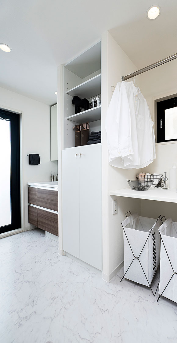 より機能的でスマートな家事動線へ。必要な設備を集約し、家事がラクにこなせるデザインとしました。
