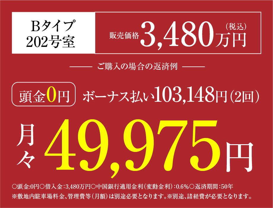 ●借入期間/1年以上50年以下(1ケ月単位)●金利 /0.6%(変動)※2025年12月の借入金利であり将来的に支払い額が変更となる場合があります。