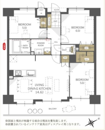住居専有面積:86.25㎡(壁芯) (約26.09坪)