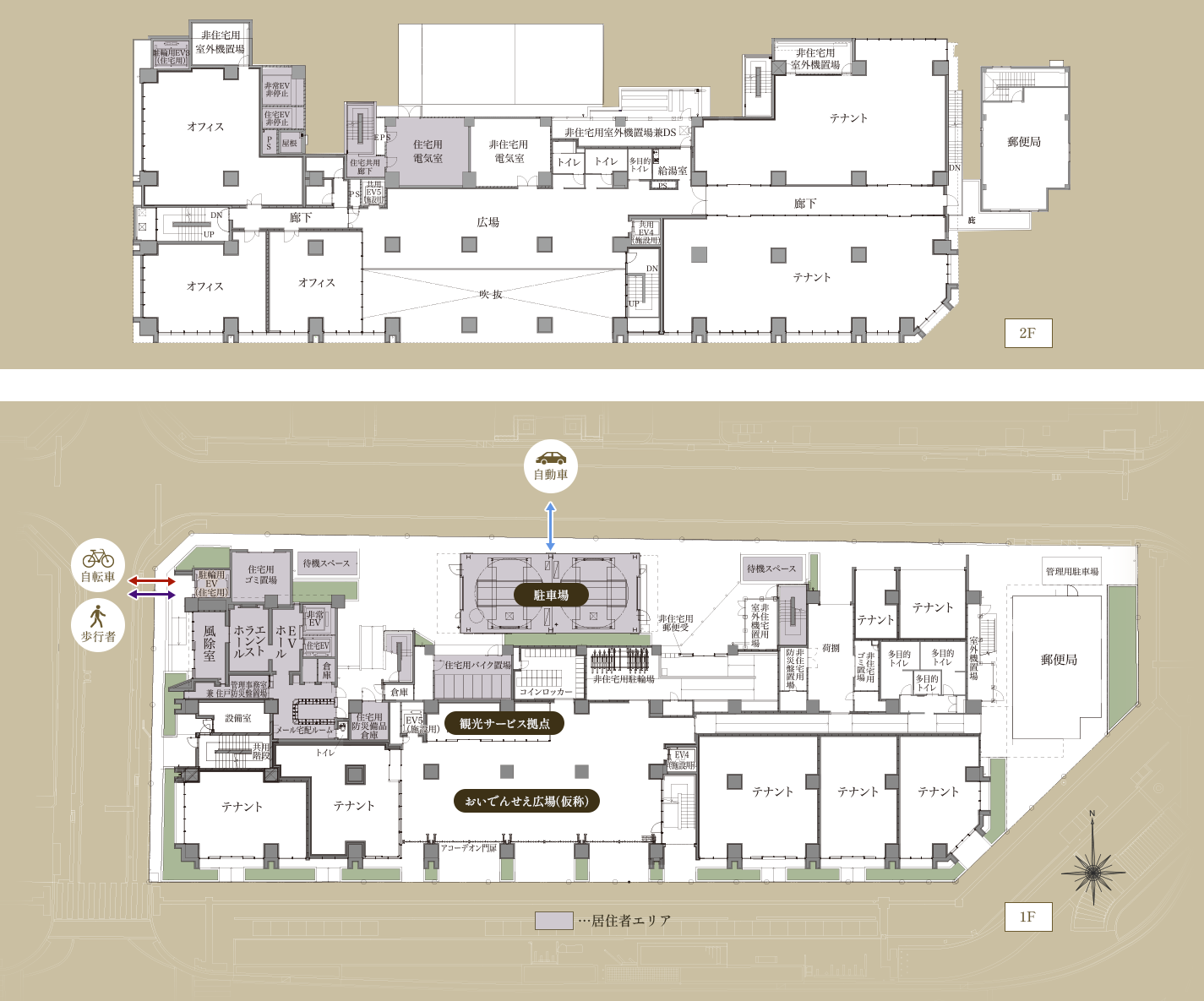 1、2階観光サービス拠点、店舗スペースなど